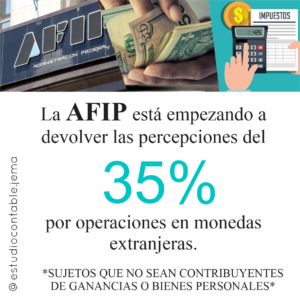 La AFIP está comenzando a devolver las percepciones del 35% por operaciones en moneda extranjera a