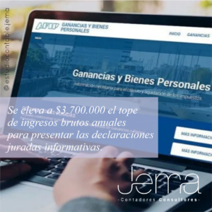 Quienes obtengan ingresos brutos anuales ( que correspondan a actividades gravadas , exentas y/o no alcanzadas en el impuesto a las ganancias) iguales o superiores a $3.700.000 en el 2021, deberán informar :