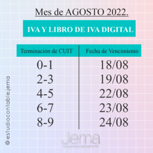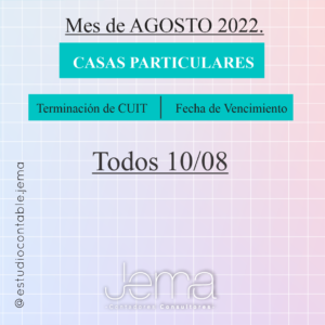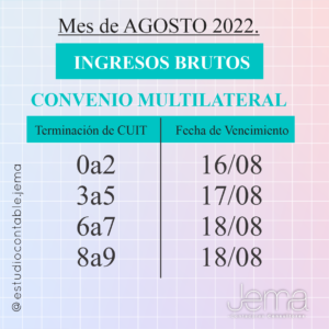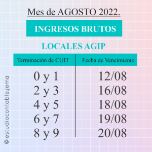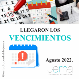 Hola !! Como están?? Por acá ya les compartimos los vencimientos del mes de Agosto 2022!! 👌🎊