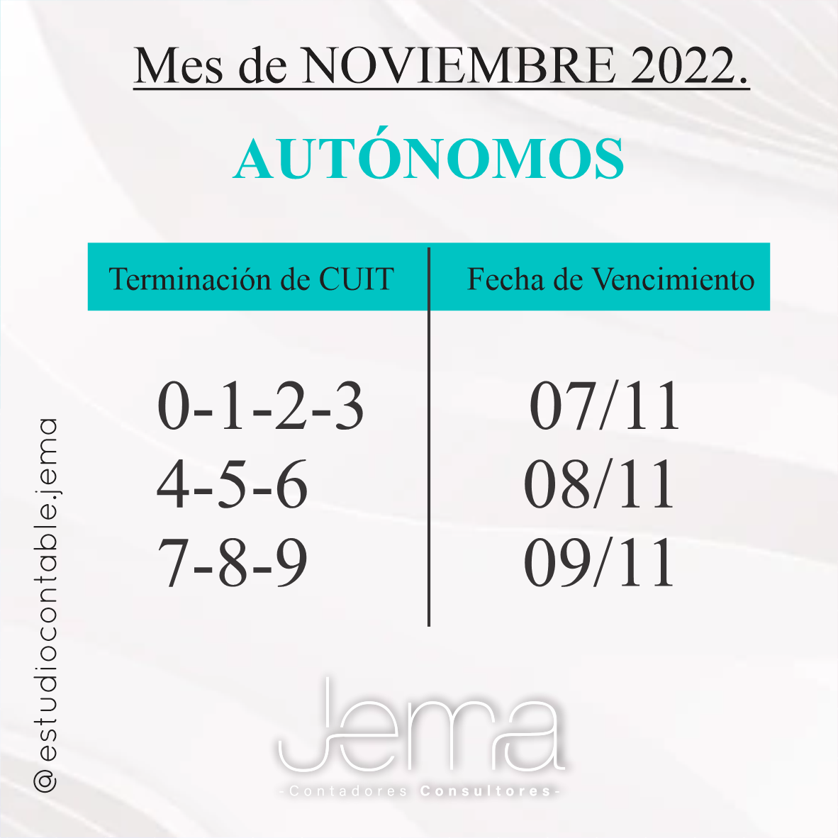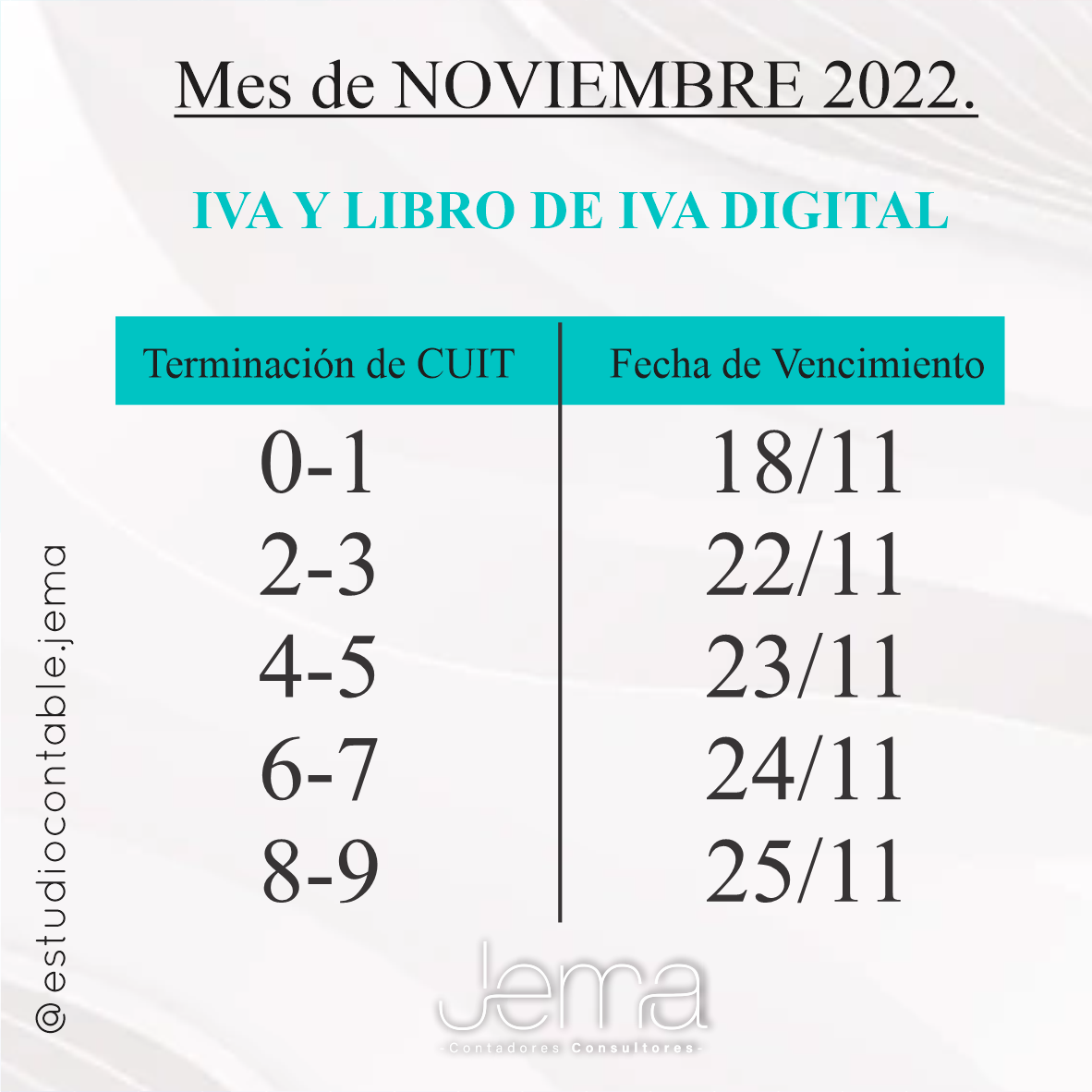 VENCIMIENTOS NOVIEMBRE 2022 / ANOTA EL TUYO